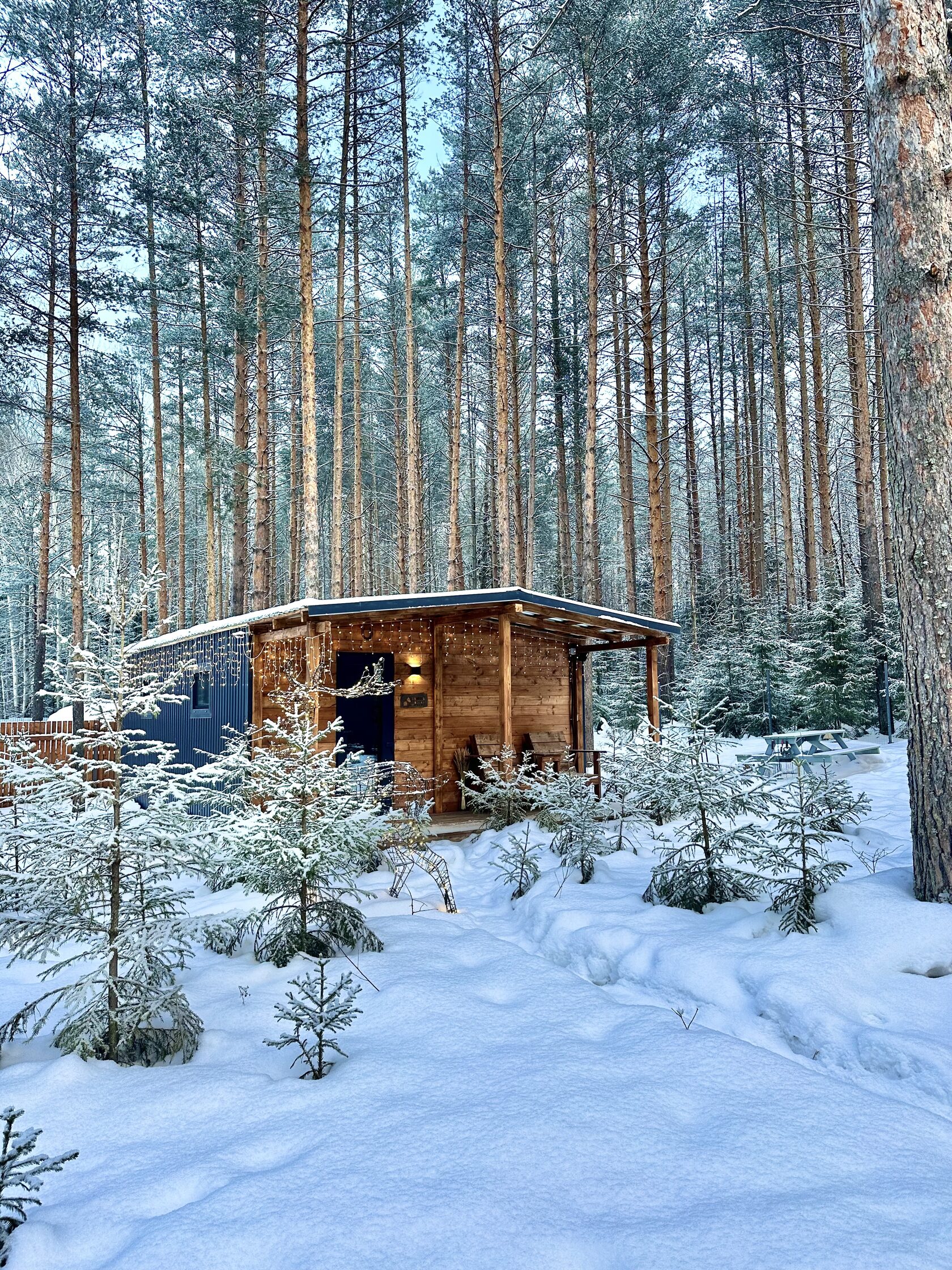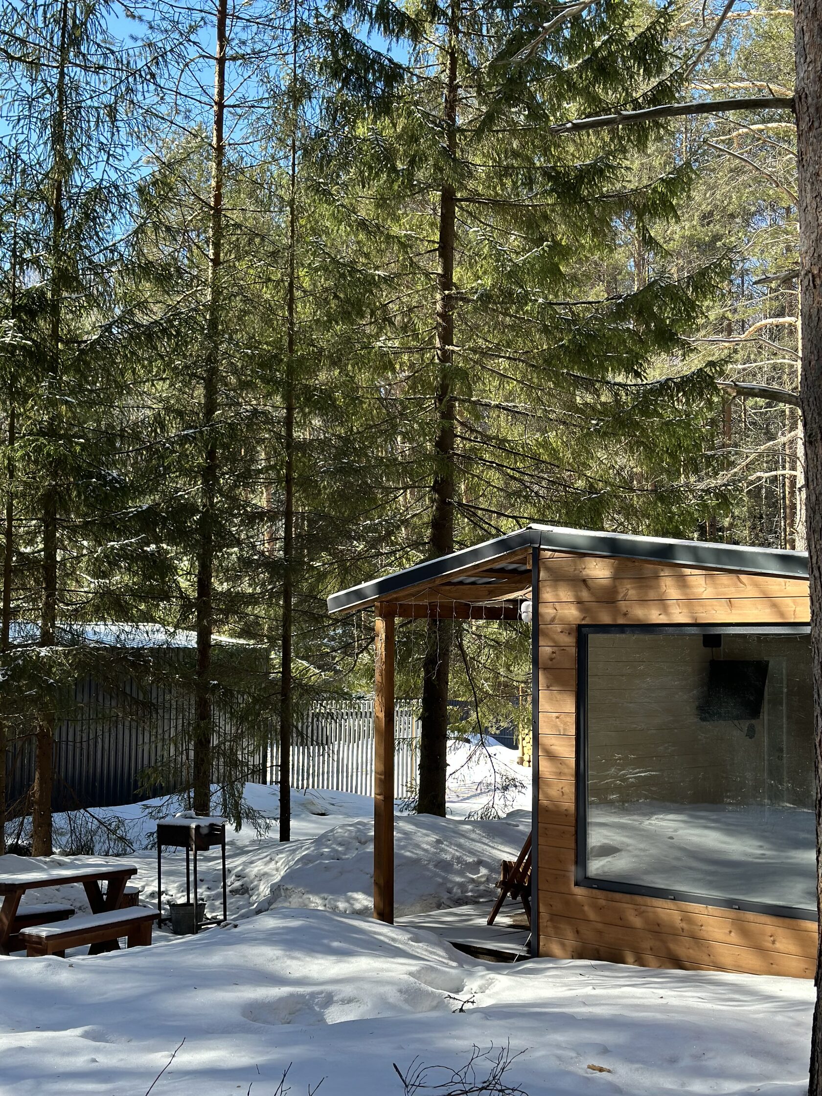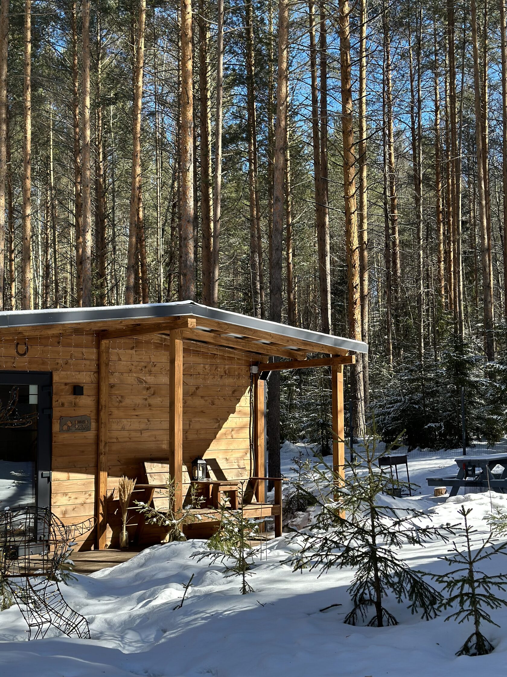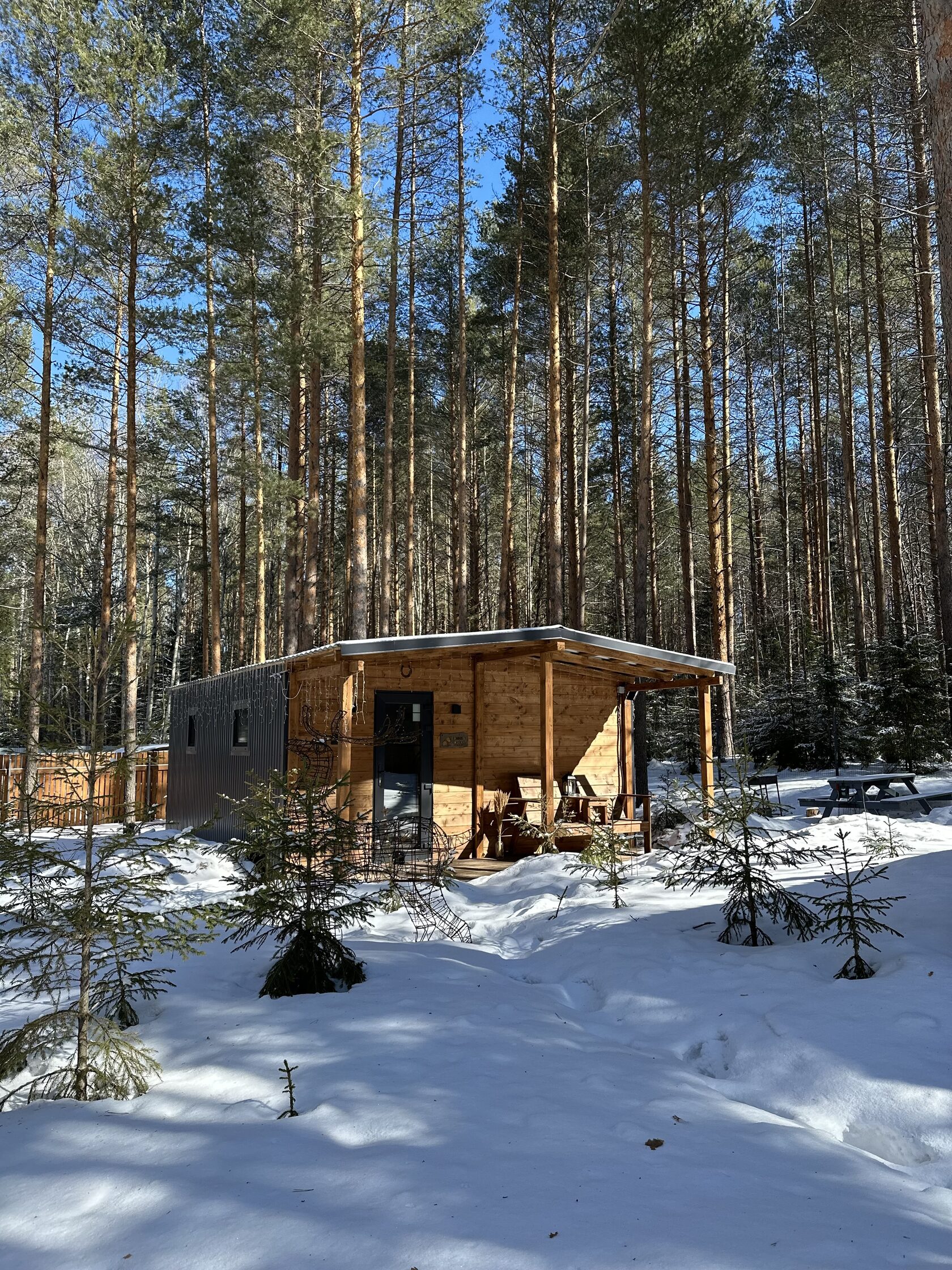 Мы организовали небольшой глемпинг со скандинавскими домиками, чтобы вы прислушались к тишине соснового бора и остались наедине с собой.